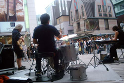 元町プラザ・リデザインプロジェクトの一つとして新たに設けられたウッドデッキ広場“デッキ・プラザ”で、横濱JAZZプロムナードの企画でストリートライブが開催されました。当日(10月12日)は三連休の中日の午後で来街者も多く、白熱した演奏に多くの人々が耳を傾けました。