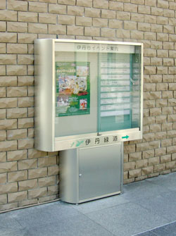 伊丹市で開催される様々なイベントの情報を掲示する総合案内板です。アイフォニックホール東側に設置した案内板は、ソーラー発電システムを導入し、夜間照明に必要な電力を太陽光から得ています。